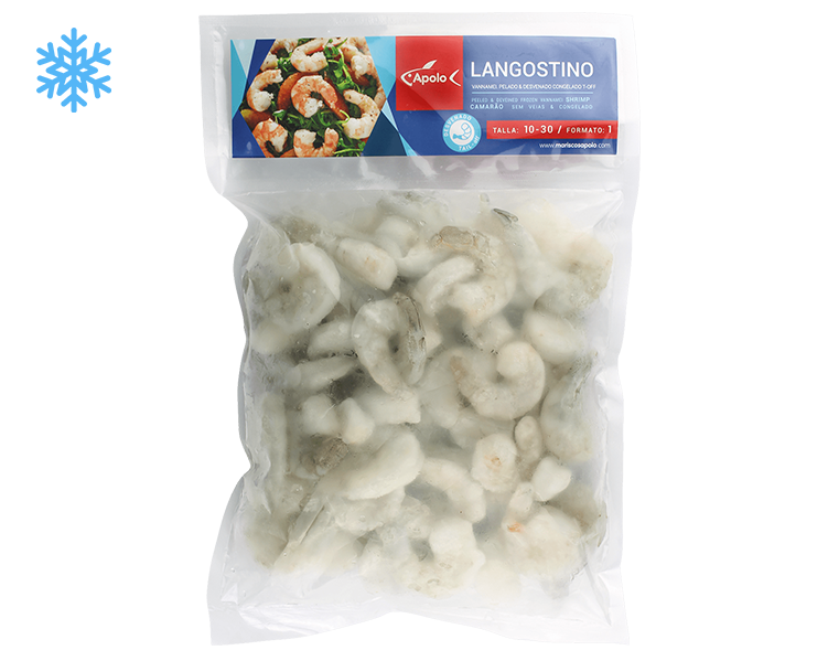 Cola de langostino cruda pelada desvenada Ecuador (10/30u) "APOLO"